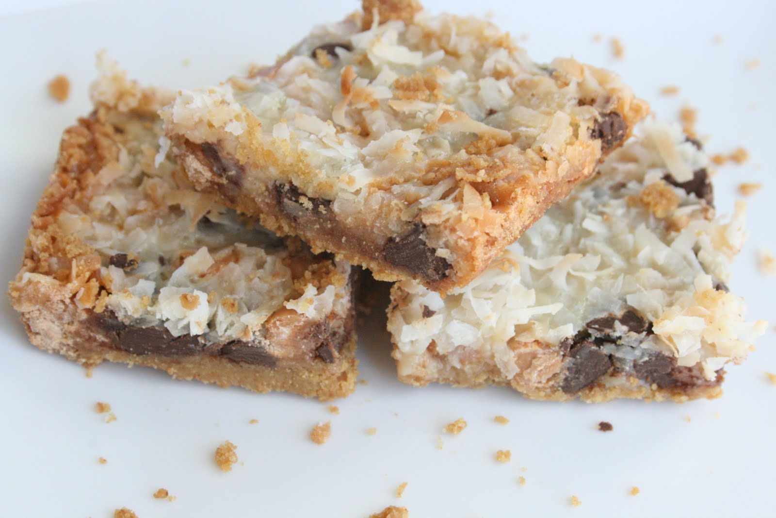 My mom was not a gourmet cook. She was a good cook but definitely not gourmet. She cooked and she baked the very basics for our family. Magic Bars were a basic in our household. They required very few ingredients, minimal time and were always a hit. Now that my sister and I are grown, they have become a staple dessert in each of our houses as well. They are the “go to” dessert, if you will. Someone is having a potluck, a baby, a bad day… time to make some Magic Bars. They are fast, easy and delicious. Make some today :)