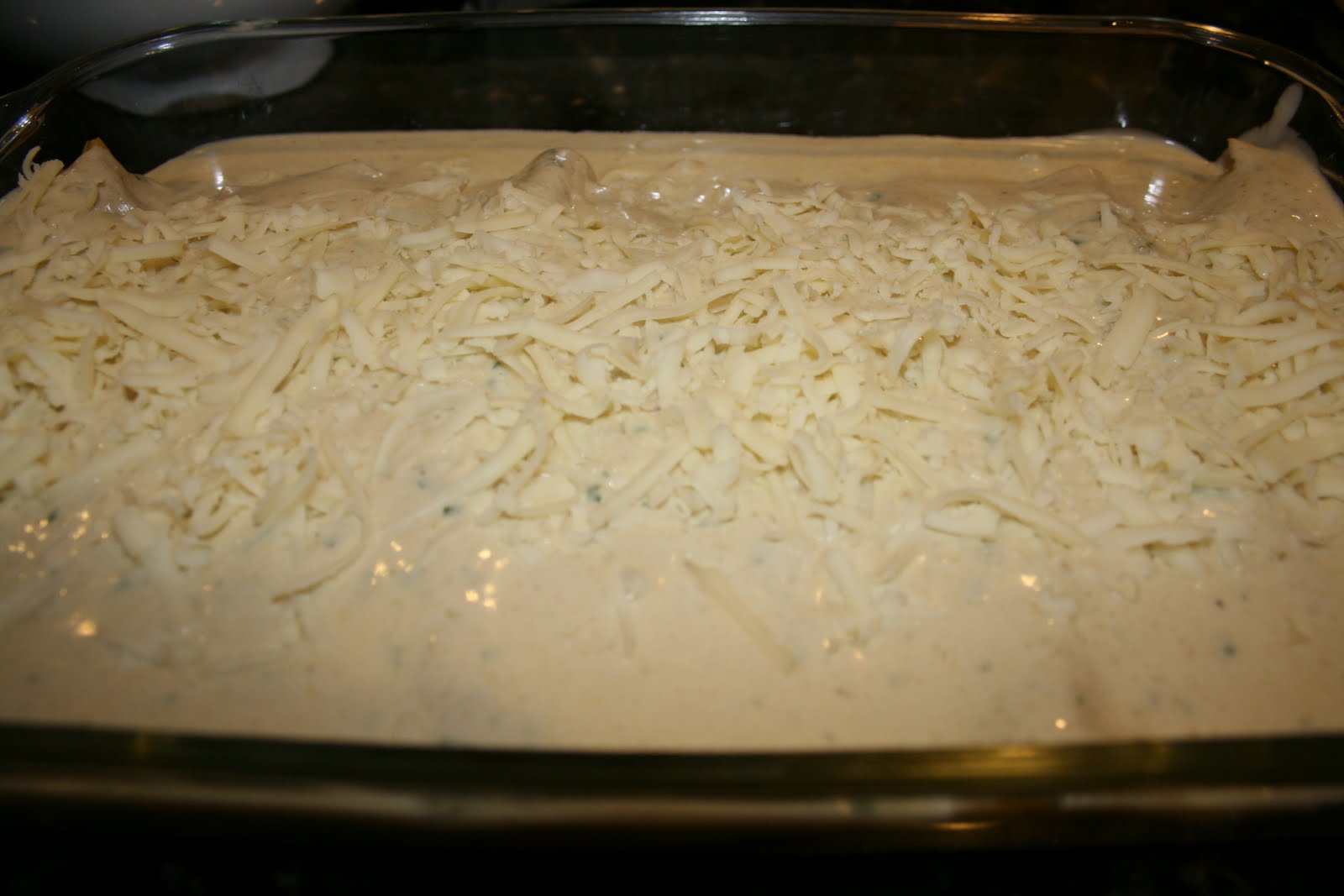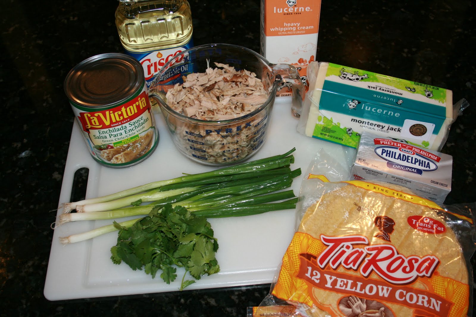 Pour the enchilada-cream sauce over the enchiladas, and sprinkle 1/2 cup of the jack cheese down the center. Bake until heated through and bubbly, about 20 minutes.