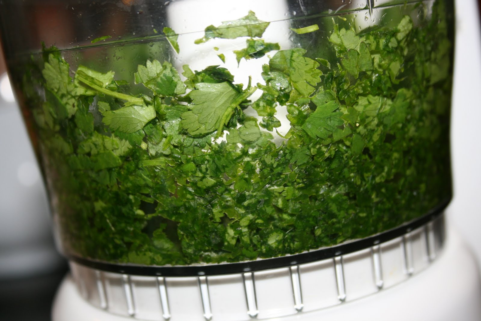 Put the fresh cilantro in the food processor or chop by hand.