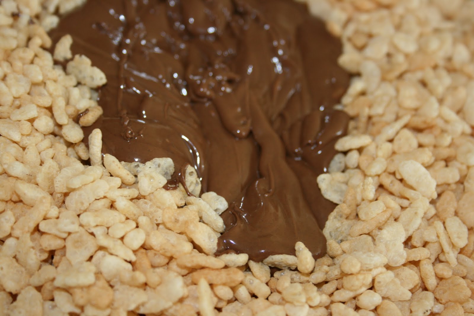 Gently mix in the chocolate with the rice cereal.