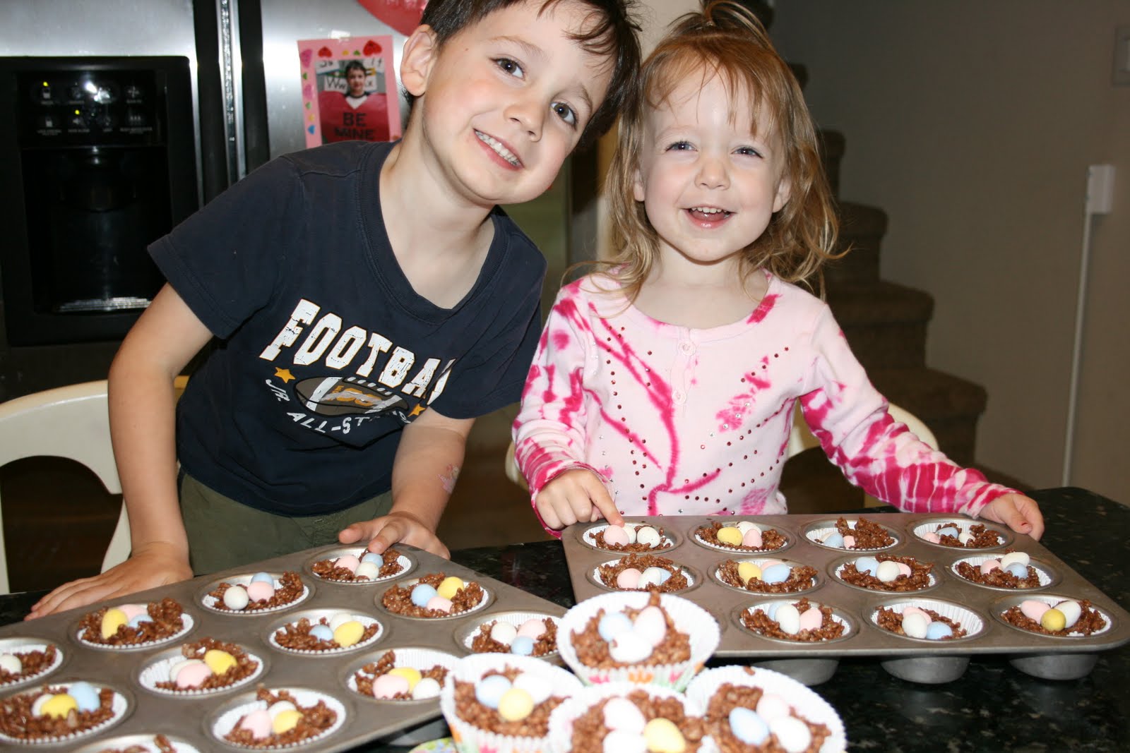 I think this is a good site for chumming Gramma's and Grampa's to come visit as well as getting good recipes! I see two of my favorite things. Grandkids and Cadbury's Mini Eggs! Did you know we toured the Cadbury Factory in New Zealand, your treats look like they belong there! Those are such cute pictures of the kids, they are such good helpers and they are learning so much. Good job
