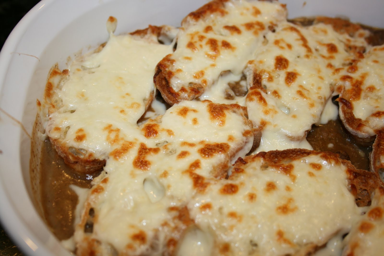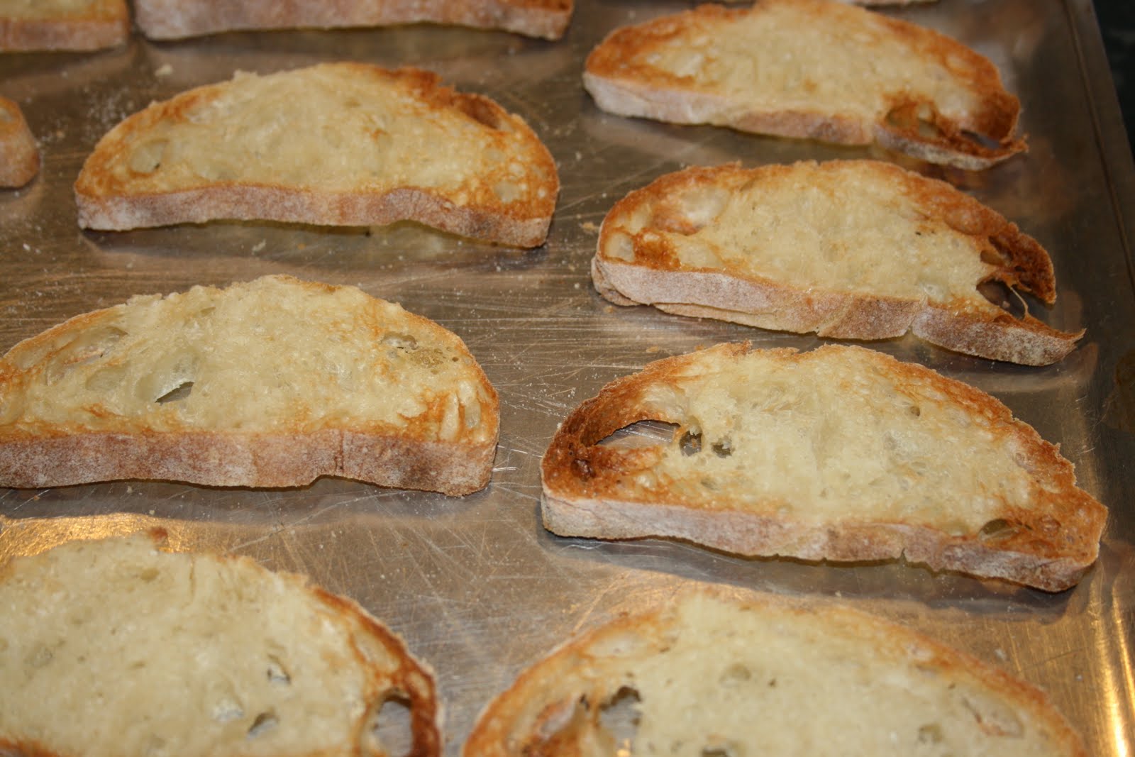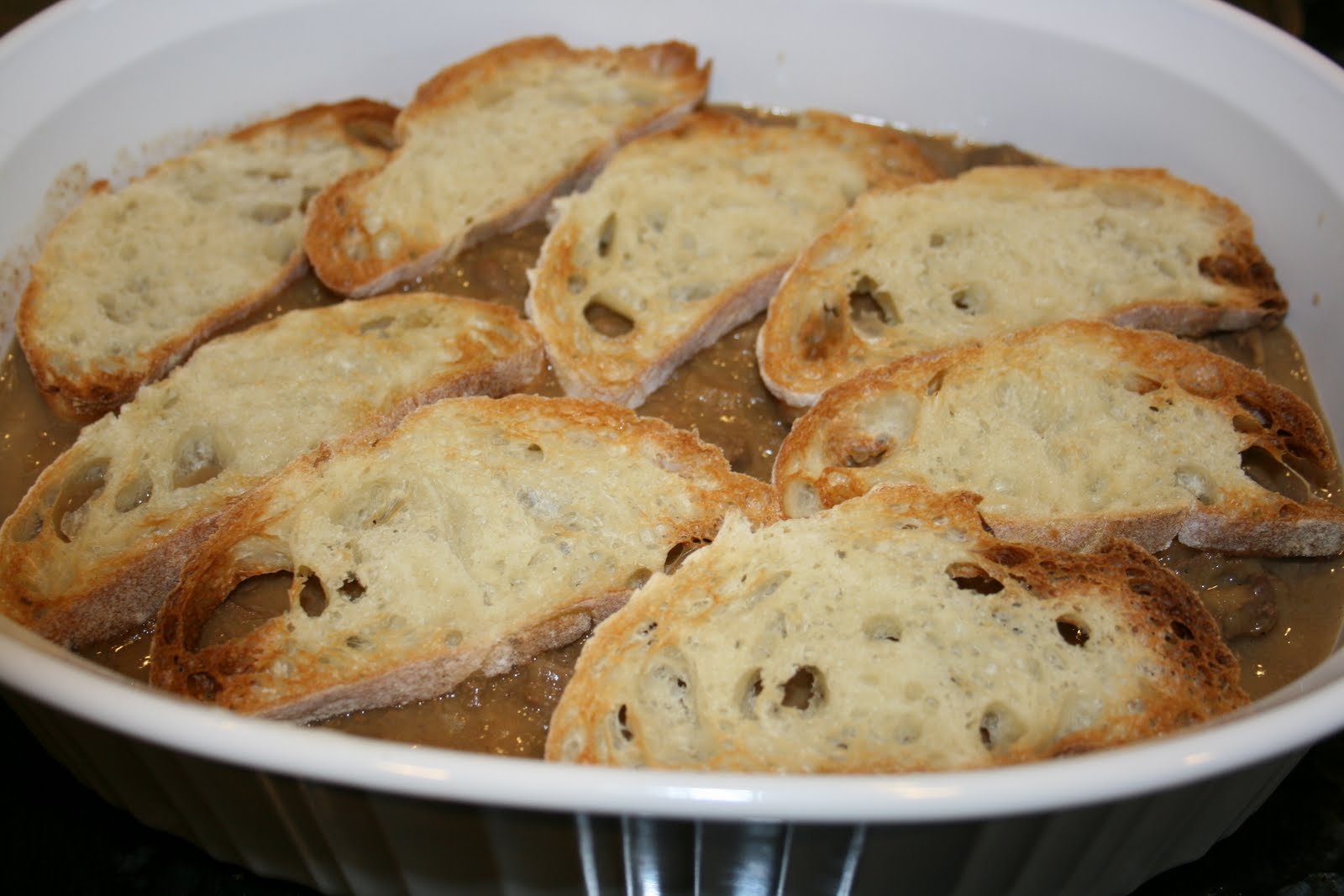 Place toasted French bread slices evenly over roast.